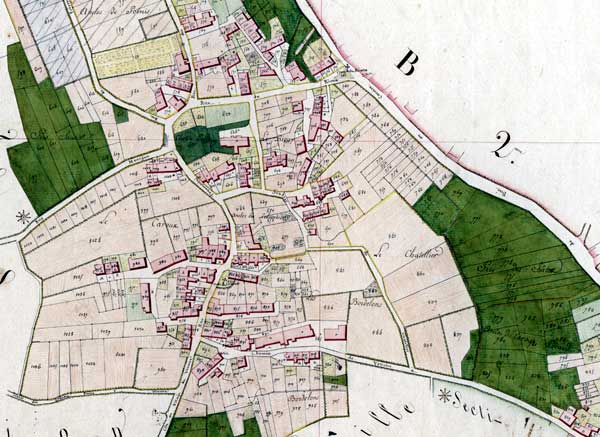 Extrait du plan du comté de Sancerre, conservé au Château de Chantilly. Ce plan a été dessiné par Nicolas Lallemant, dans les années 1670, pour le prince de Condé, comte de Sancerre. La limite du comté passe entre Bué et Venoize excluant cette dernière de la mouvance comtale