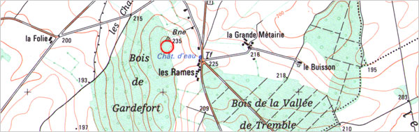 Description Située au point culminant de la commune, aujourd'hui en plein bois, elle forme un tertre circulaire de 58 à 60 mètres de diamètre sur environ 1 hectare de superficie ; les fossés de 12 à 15 mètres de large étaient profonds, à la fin du 19e siècle, de 5 à 6 mètres ; il subsiste des vestiges de murs en maçonnerie et un glacis de pierre ; il ne s'agit pas d'une motte car il n'y a pas de surélévation artificielle du site, mais les traces d'une basse-cour sont visibles.