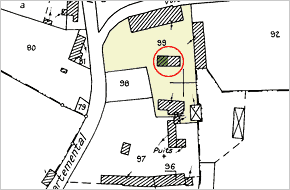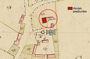 Commentaire historique : ce bâtiment, proche de l’ancienne église paroissiale, a été construit ou reconstruit au 17e siècle : il porte la date de 1691, et la phrase « ENTREZ PAR LA PORTE ETROITE » est inscrite sur le linteau d’une fenêtre. Il a servi de presbytère jusqu’à la fin du 18e siècle. Au 19e siècle une porcherie est accolée au bâtiment dans l’alignement est. Il n'a plus qu'un usage de remise.
