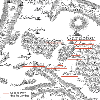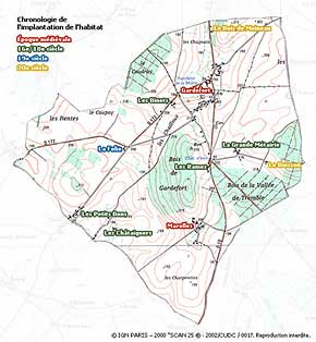 ![]() Chronologie de l'implantation de l'habitat (d'après les premières mentions d'archives et les sources cartographiques consultées) zoom |