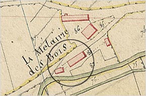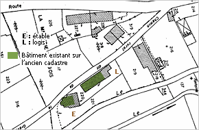 Commentaire historique : Cette maison composée de trois logis sous un même toit, existait sur l'ancien cadastre mais sa façade a été entièrement reprise dans la 1ère moitié du 19e siècle. L'étable, construite également au 19e siècle englobe un bâtiment du 18e siècle (?) que la tradition locale considère comme une ancienne chapelle. Il semble plus vraisemblable que le bâtiment en hémicycle à l'extrémité de l'étable corresponde aux vestiges d'une tour ou d'un pigeonnier.