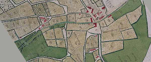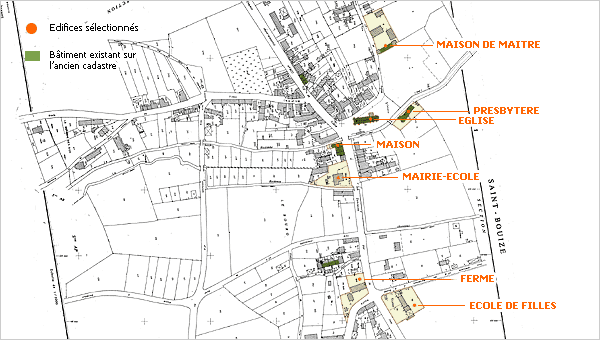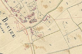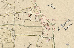 ![]() Plan terrier de la seigneurie de Saint-Bouize, vers 1770. (orientation nord-sud approximative) |