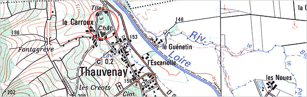 Commentaire historique : Une motte, mentionnée sur un plan terrier du 18e siècle et située à 100 mètres à l'ouest du château actuel, pourrait être le premier siège de la seigneurie de Thauvenay ; c'est à l'emplacement du château reconstruit au 13e siècle (?) (il reste 2 tourelles d'enceinte avec archères) que, Pierre Perrinet de Faugnes réédifie entièrement le logis seigneurial, dans les années 1770-1773 (la maison à l'entrée des communs est antérieure à la construction du nouveau logis seigneurial). Une canalisation d'eau pour alimenter le château est alors établie depuis la fontaine, construite en 1773 (date portée), située en amont à 150 mètres. Un vaste parc est aménagé, comme l'atteste le plan terrier de la seigneurie, contemporain de la construction. Le château est racheté en 1819 par la comtesse Bachasson de Montalivet qui réaménage le logis. En 1898, la demeure, qui appartient à la famille de Chabaud La Tour, est agrandie à l'est d'un nouveau corps de bâtiment avec tourelles fermant la cour située derrière les cuisines du château ; la construction et la décoration de ce nouvel édifice sont confiées à Louis Parent, architecte à Paris. Les écuries, très bien conservées, datent de cette campagne de construction. Le colombier situé dans le parc du château a été rasé il y a peu de temps.