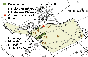 Parties constituantes : parc ; communs ; tour ; colombier ; fontaine ; écurie ; maison Localisation