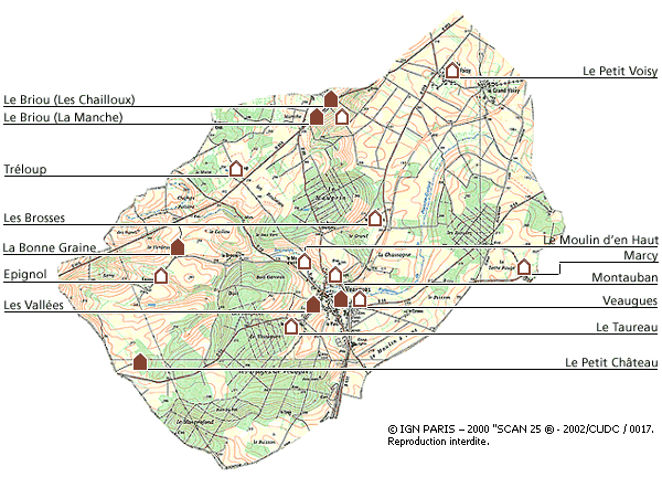 Dans Veaugues : accès aux dossiers sélectionnés par le plan cadastral du dossier "Village".