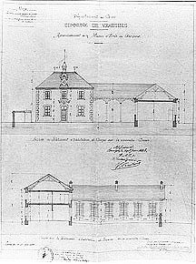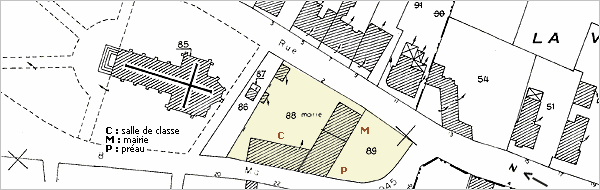 Commentaire historique : Construction dune mairie-école en 1856 par l'architecte Guillard et agrandissement en 1881 par l'architecte Leclère : ajout d'un préau et d'une salle de classe en retour d'équerre. Actuellement le bâtiment nest plus quà usage de mairie.