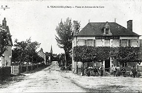 ![]() Maison type « bloc à terre » avec double logis, réaménagement au milieu du 19e siècle d'un bâtiment existant sur l'ancien cadastre et propriété du meunier de Veaugues. |
