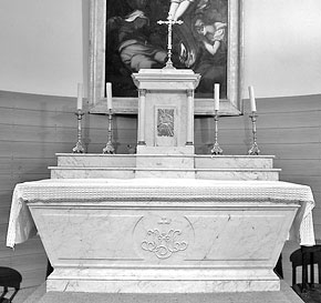 | Eglise paroissiale l Stalles l Maître-autel l Tableau de Christ en croix l Tableau de la Vierge à l'Enfant l Tableau de sainte Catherine l Tableau de saint Priest | ||